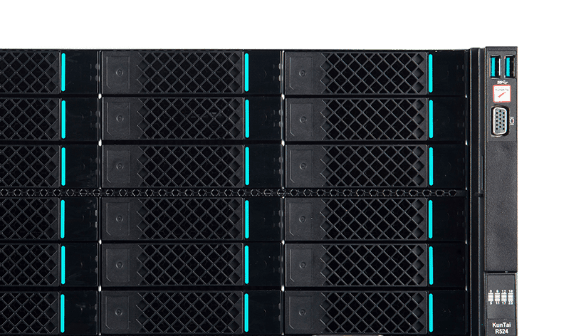 KunTai R524 存储型服务器是金沙990CC数码基于鲲鹏处理器推出的新一代 ARM数据中心服务器。。。主要面向存储业务,,具有海量存储、、、、高性能、、、、低功耗以及易扩展的特点,,,适合为大数据分析、、软件定义存 储等应用场景的工作负载进行髙效加速。。